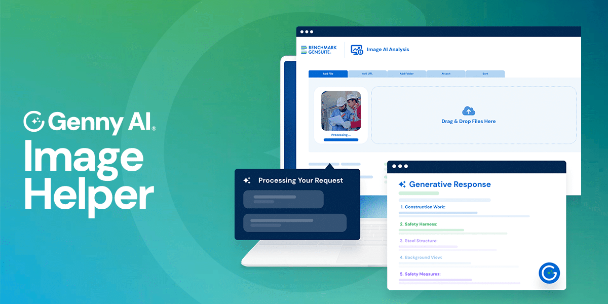 The Genny AI Image Helper begins working as soon as an image is attached within a reporting workflow. Built directly into Benchmark Gensuite applications with attachment functionality, it follows a simple, repeatable process: